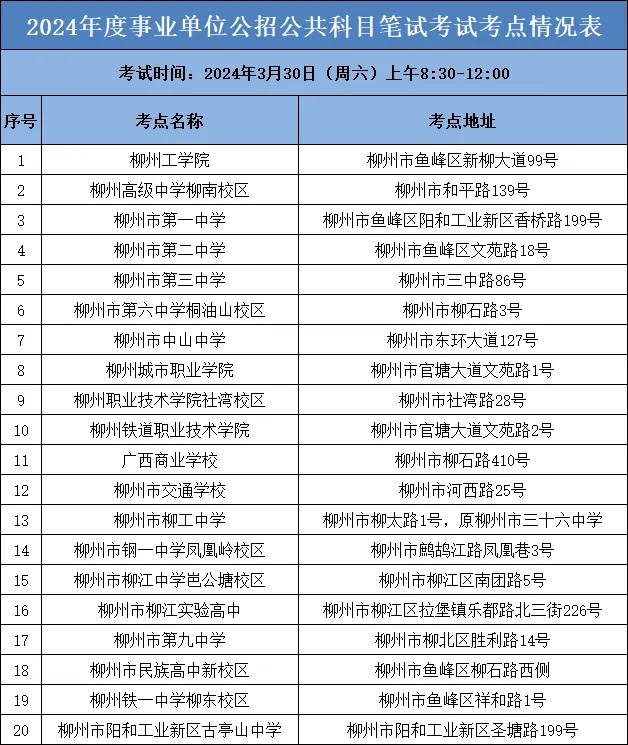 原文標(biāo)題:今起打印準(zhǔn)考證!2024年度柳州市事業(yè)單位公開考試招聘筆試將于本周六舉行
