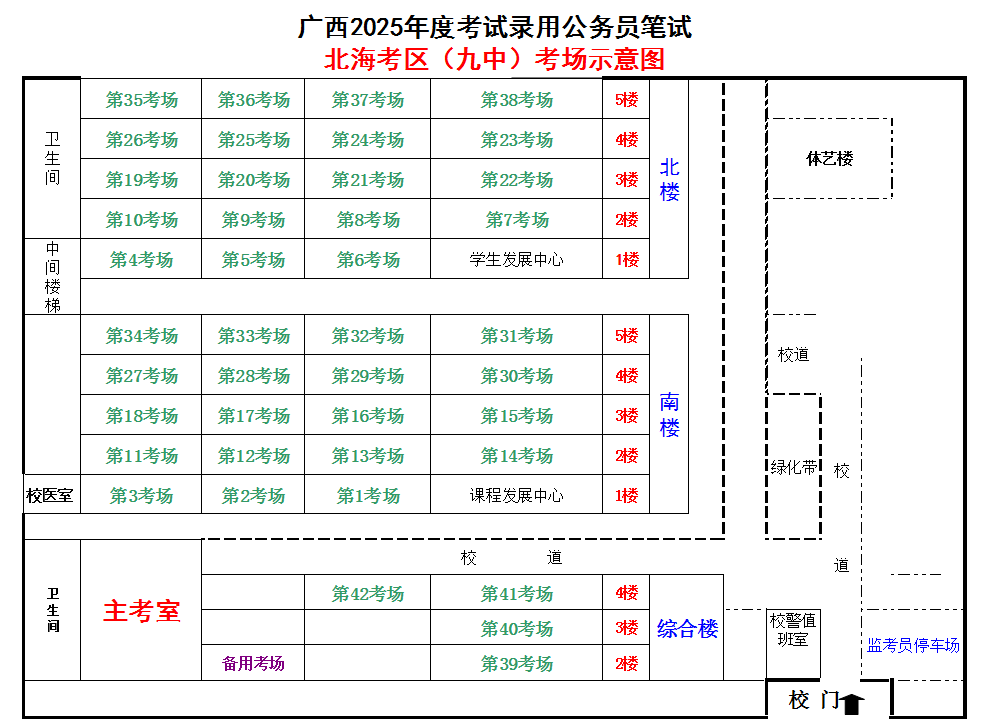 北??紖^(qū)共設(shè)置5個(gè)考點(diǎn),具體考點(diǎn)考場(chǎng)布置分別如下: