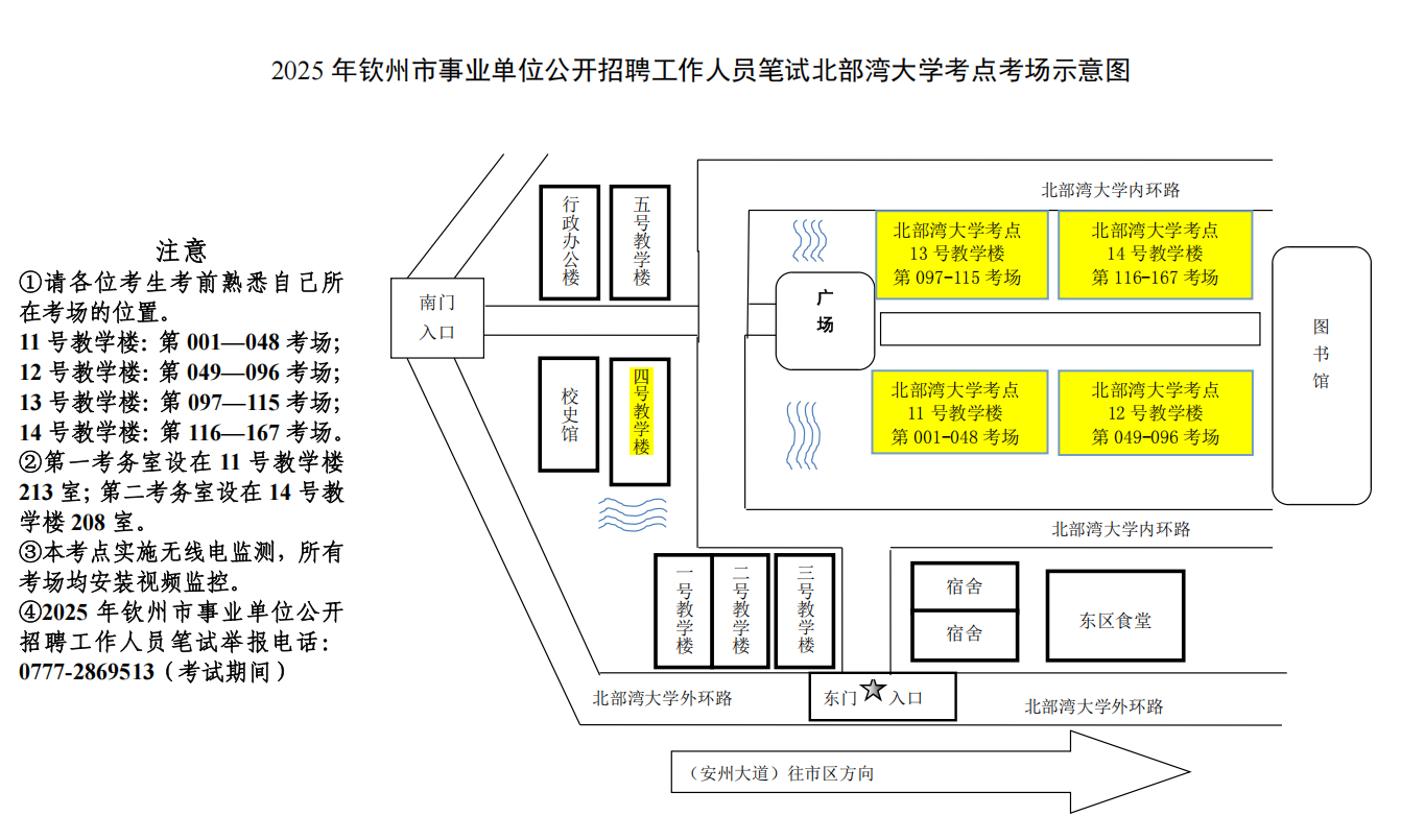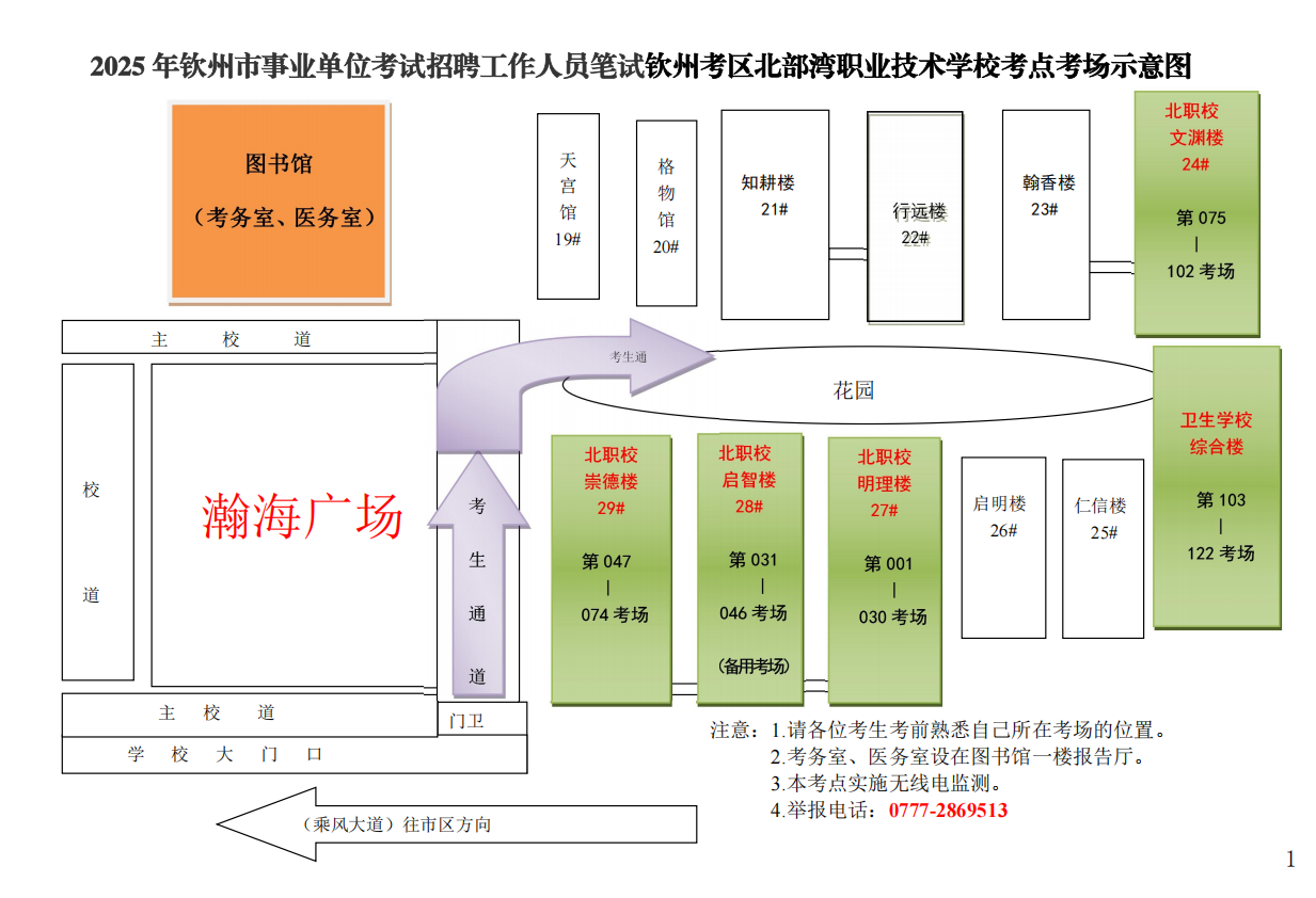 (二)請考生按照本人準(zhǔn)考證上的考點學(xué)校,提前了解學(xué)校所在位置,特別注意不要混淆北部灣大學(xué)考點與北部灣職業(yè)技術(shù)學(xué)??键c。部分考點學(xué)校離市區(qū)有一定距離,請關(guān)注當(dāng)天交通情況和天氣情況,充分考慮路途時間和天氣因素影響,提前謀劃出行時間、路線和交通工具,建議提前60分鐘到達考點,以免影響正常入場參加考試。