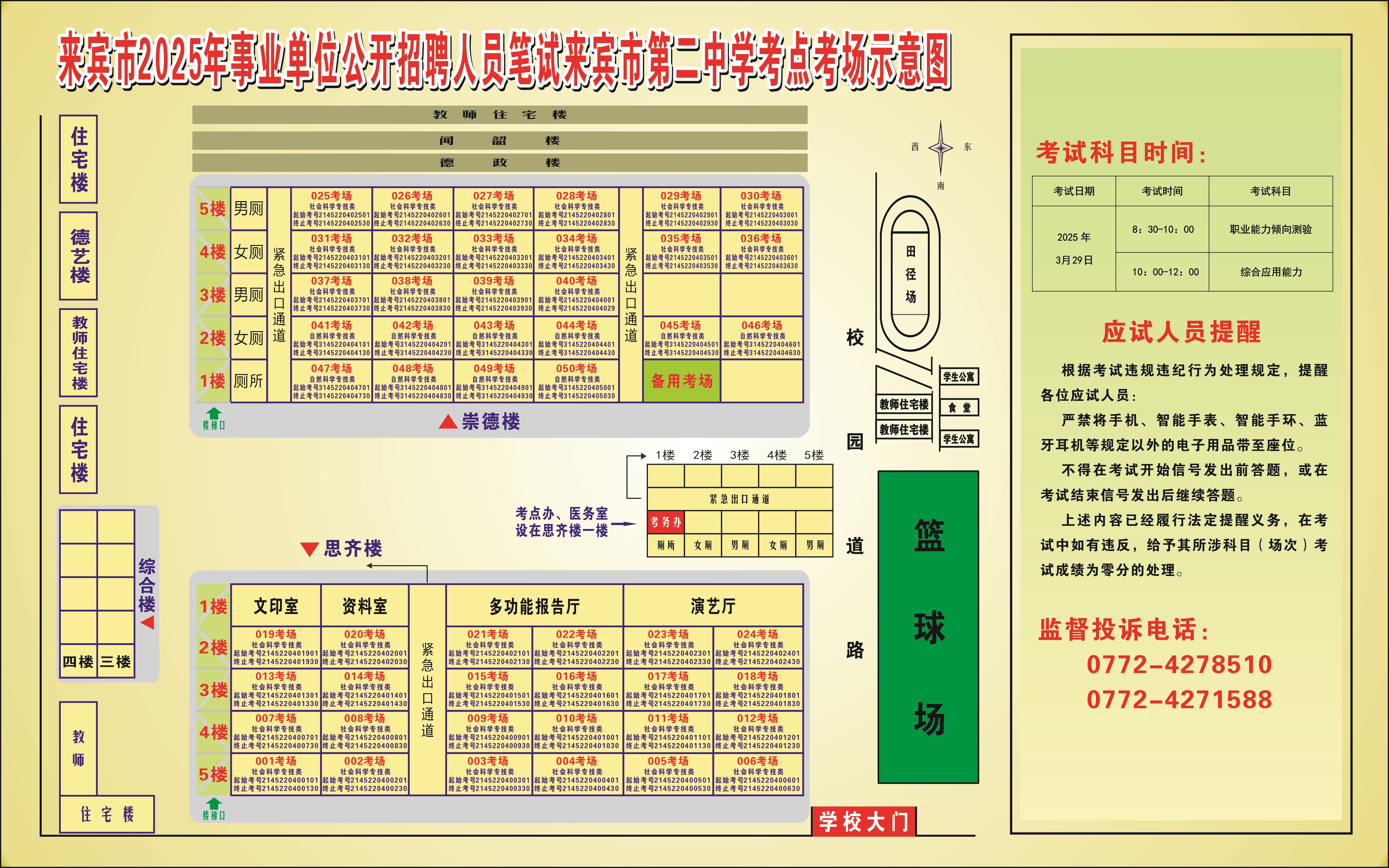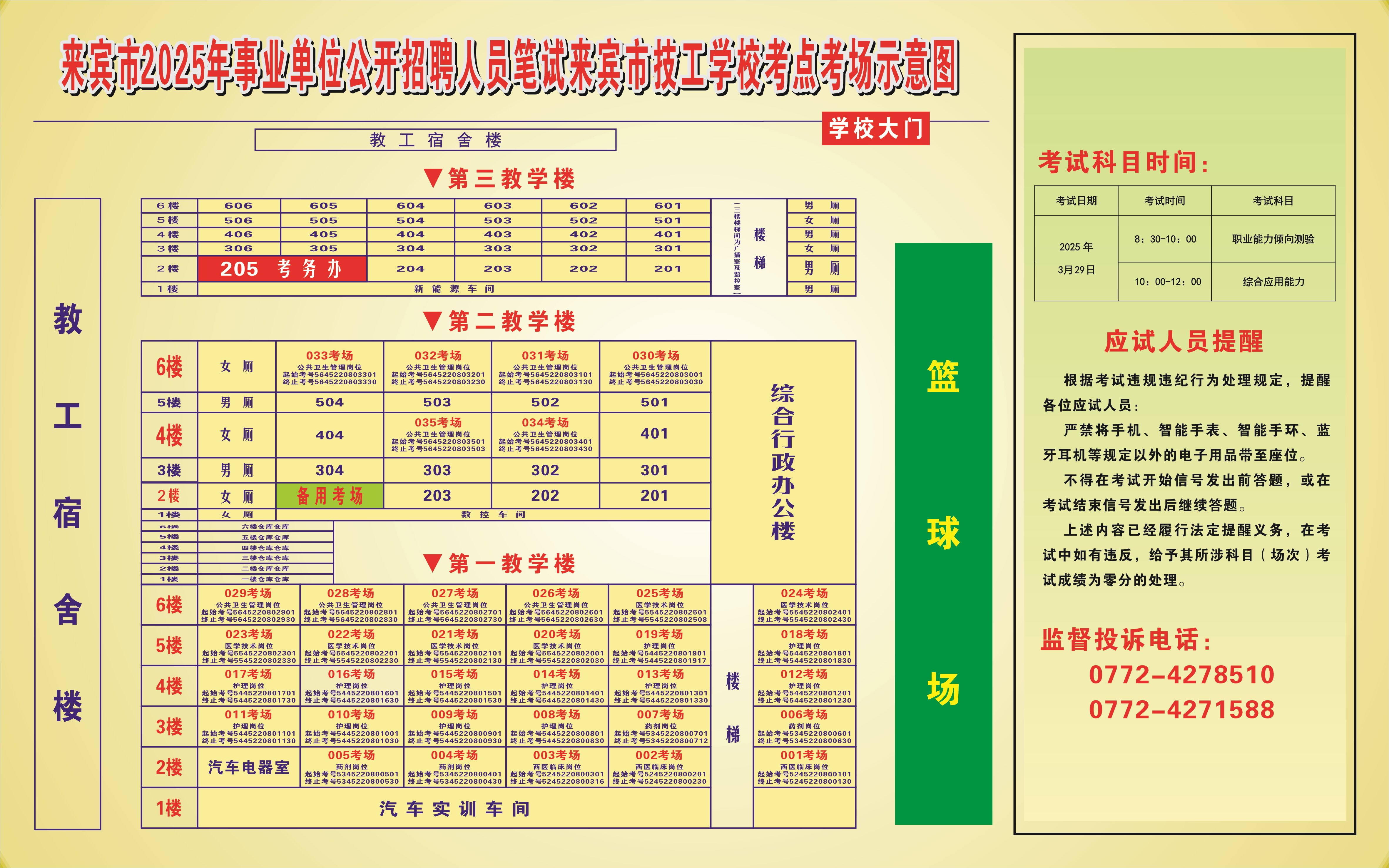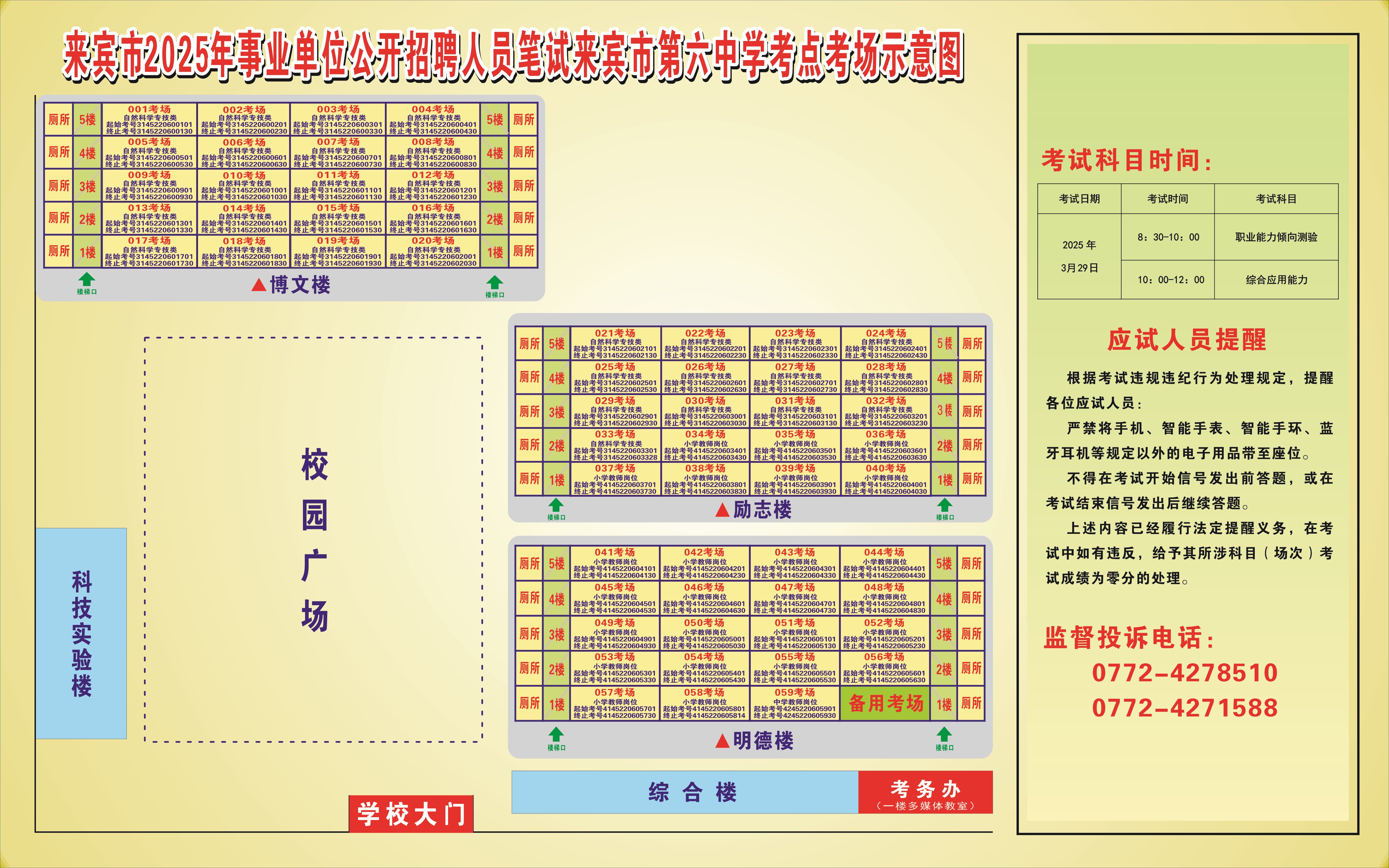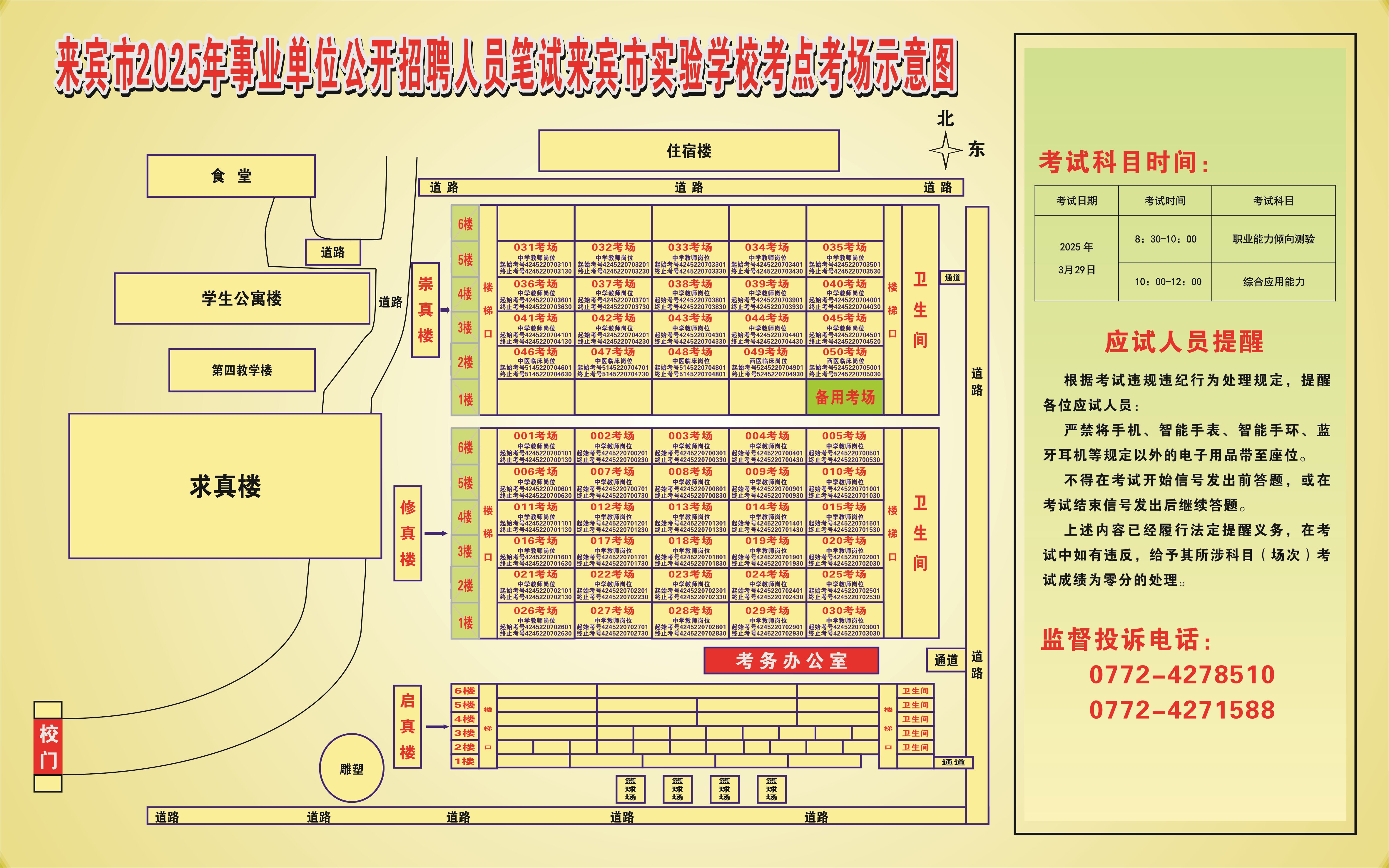 2025年來賓市公開招聘事業(yè)單位人員筆試 考生須知及考點考場示意圖