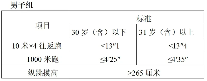 研究生及以上學(xué)歷報(bào)考人員參加體能測(cè)試三項(xiàng)內(nèi)容中有兩項(xiàng)達(dá)標(biāo)的,視為合格。非研究生及以上學(xué)歷報(bào)考人員體能測(cè)試三項(xiàng)全部達(dá)標(biāo)方為合格。