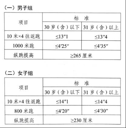 參照《公安機(jī)關(guān)錄用人民警察體能測評項(xiàng)目和標(biāo)準(zhǔn)》的項(xiàng)目及測試規(guī)則開展體能測評,本次體能測評的項(xiàng)目和標(biāo)準(zhǔn)如下: