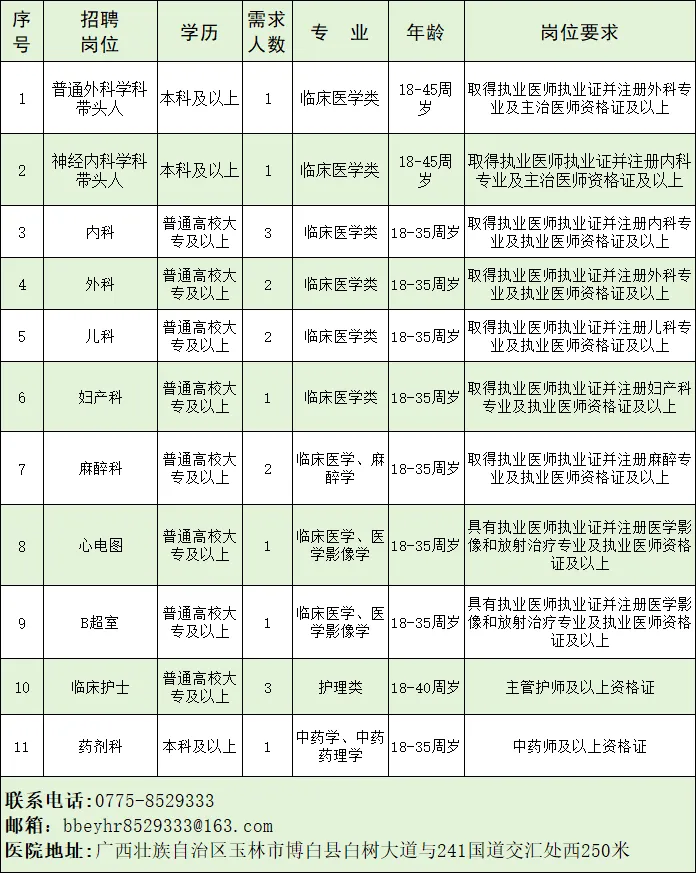 原文標題:博白縣第二人民醫(yī)院公開招聘,長期有效!