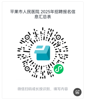 1.填寫提交紙質(zhì)版《平果市人民醫(yī)院2025年度公開招聘專業(yè)技術人員報名表》(附件3),并掃描下方二維碼填寫報名信息。