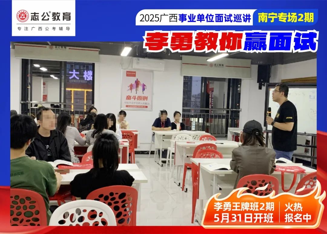 原文標(biāo)題:燃爆!直擊2025廣西事業(yè)單位面試——5.26李勇教你贏面試線下巡講現(xiàn)場(chǎng)