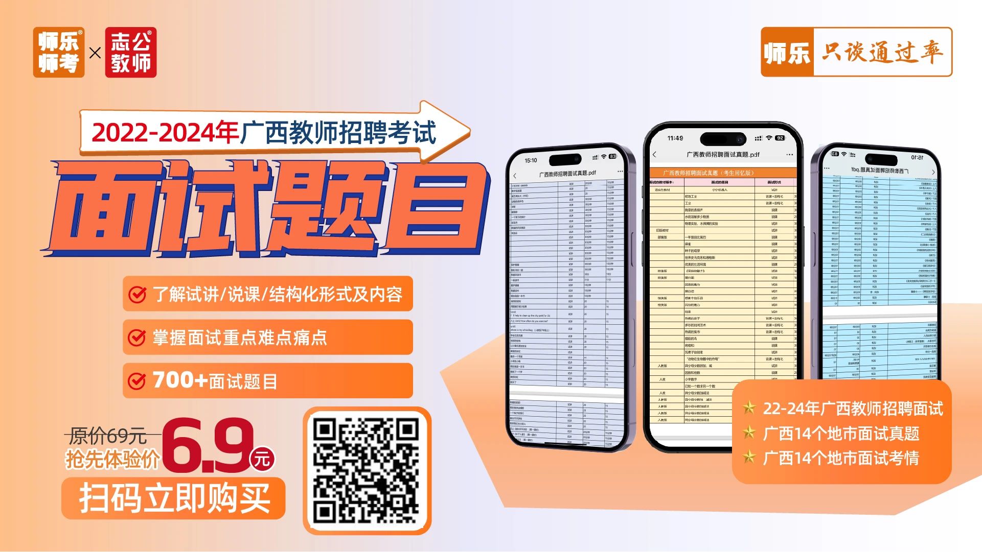 ??寫作邏輯+面試導(dǎo)入金句點撥 ?含13+篇試講+說課+結(jié)構(gòu)化 搶先體驗價:6.9元 ??14地市教招面試zhen題 了解試講/說課/結(jié)構(gòu)化形式及內(nèi)容 面試禮儀課 ??面試禮儀干貨介紹 正反面案例直觀對比 ??著裝、問候、儀態(tài)、言談禮儀等事項介紹 【師樂】廣西教招備考群 ??最新公告 備考資料 ??刷題打卡 考試交流