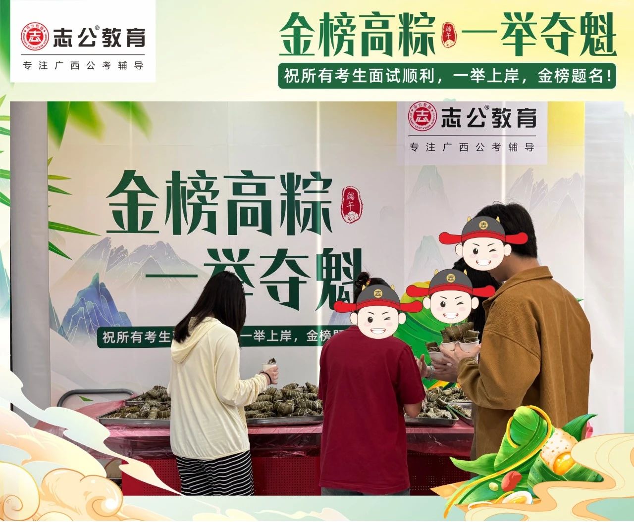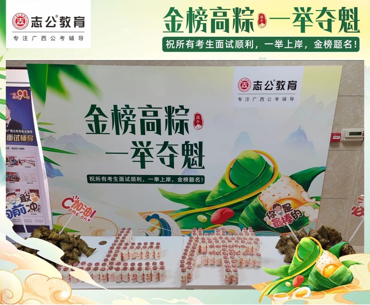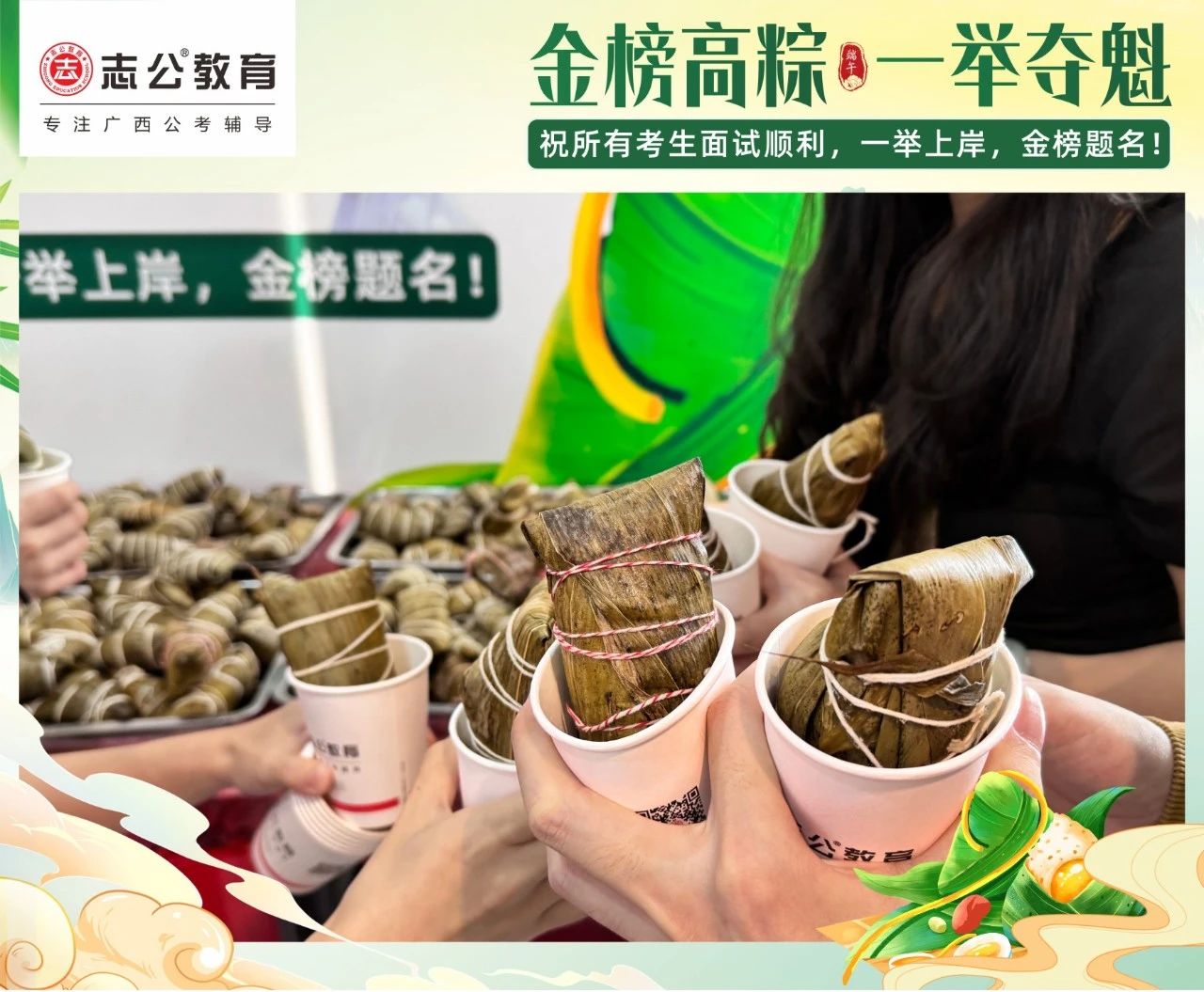 最后,再次祝愿大家端午節(jié)安康,六一兒童節(jié)快樂(lè)!愿志公教育每位員工在雙節(jié)的喜慶氛圍中,收獲滿滿,幸福常伴!也愿志公教育每位學(xué)員吃上粽子一舉高“粽”,實(shí)現(xiàn)自己的公職夢(mèng)想!