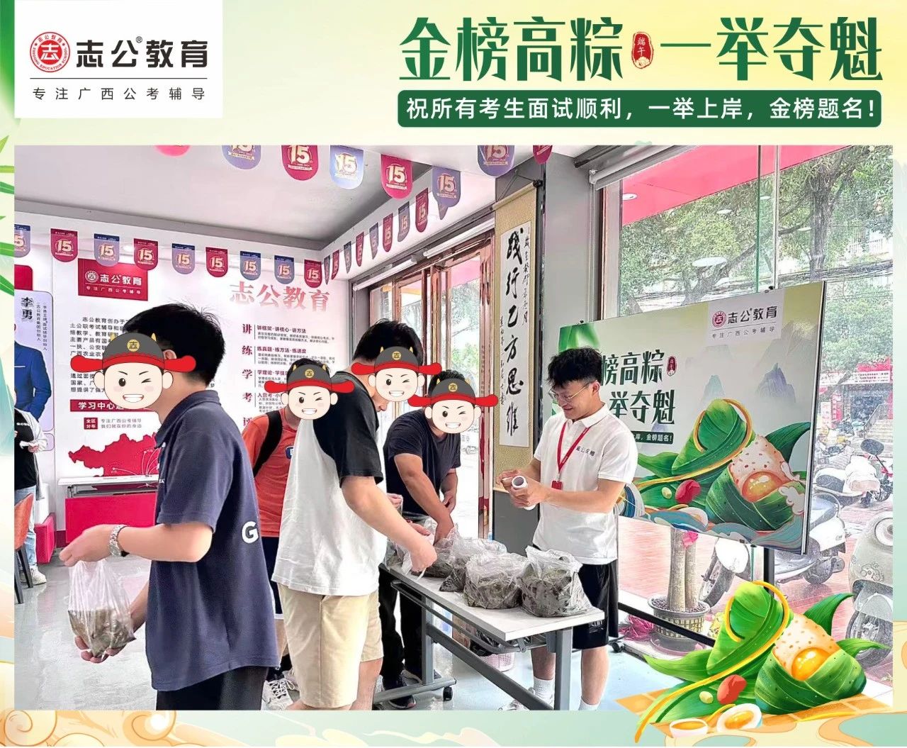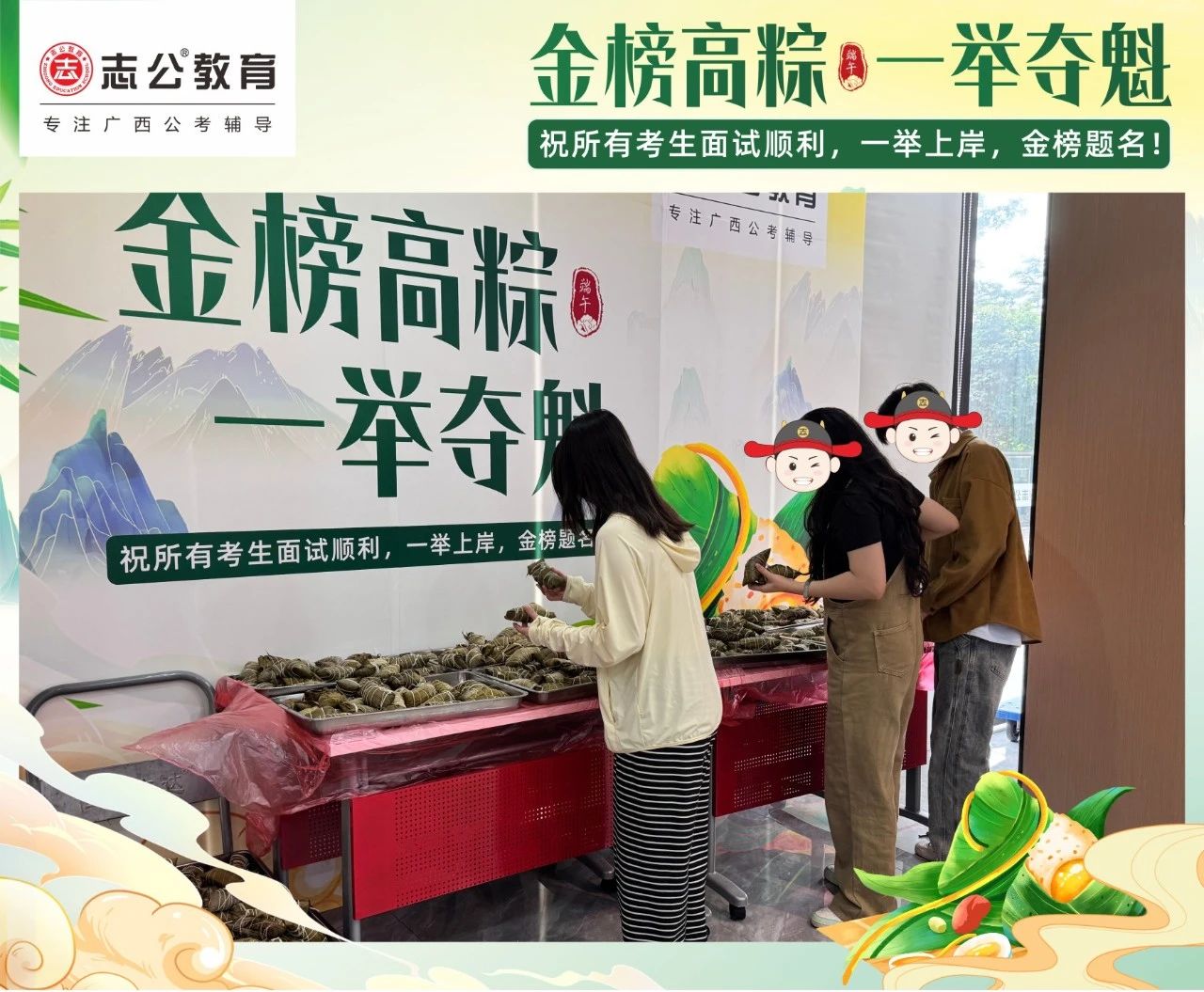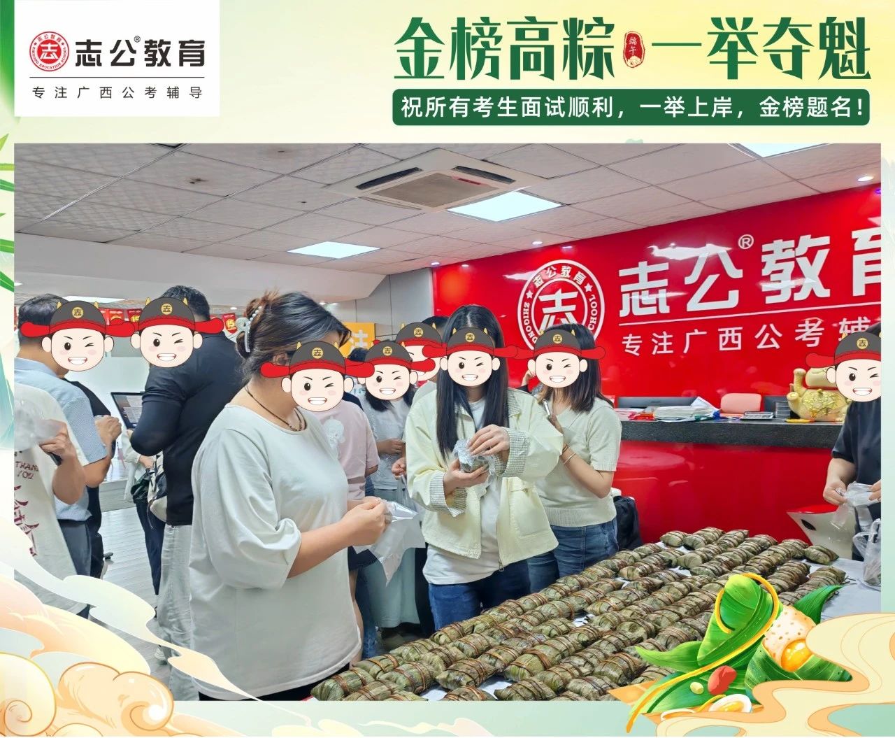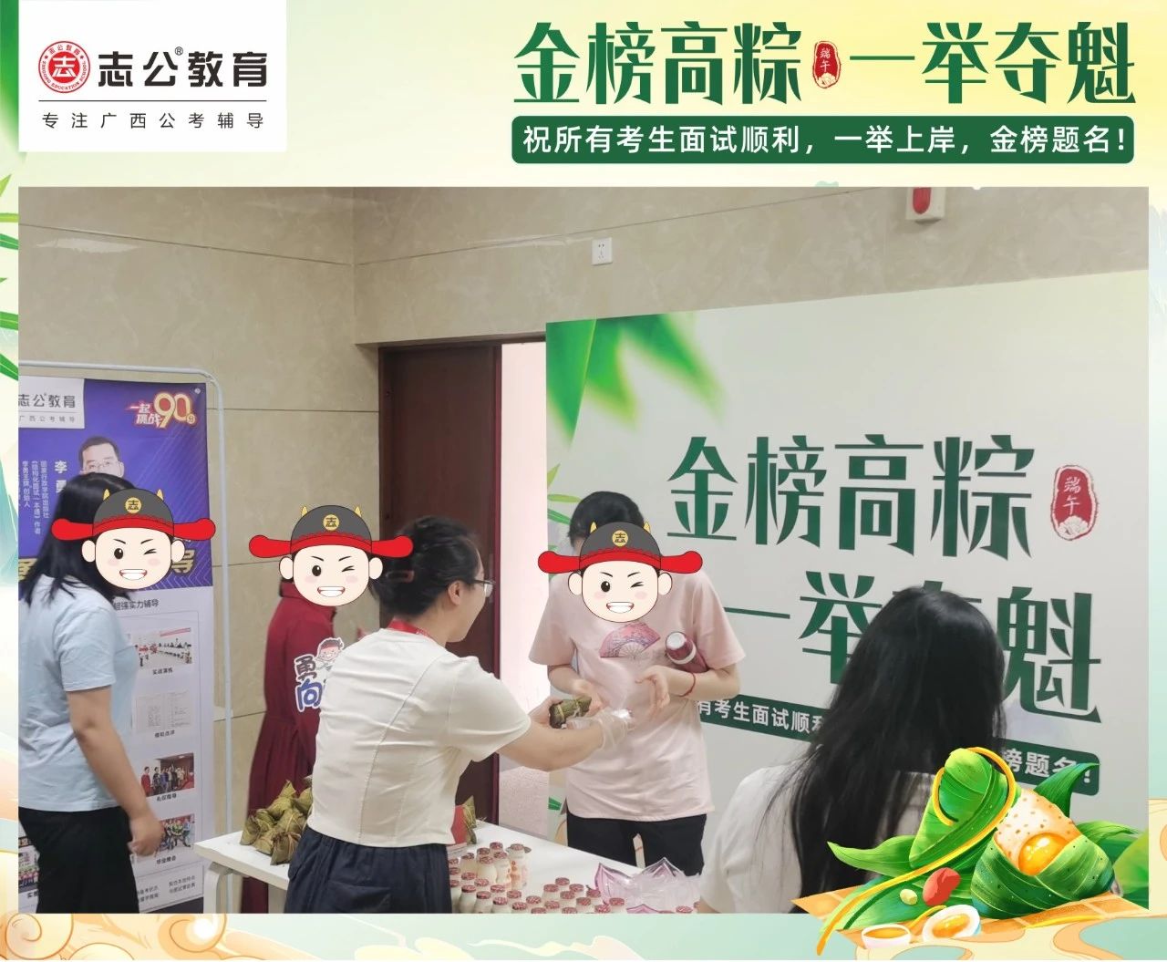 最后,再次祝愿大家端午節(jié)安康,六一兒童節(jié)快樂(lè)!愿志公教育每位員工在雙節(jié)的喜慶氛圍中,收獲滿滿,幸福常伴!也愿志公教育每位學(xué)員吃上粽子一舉高“粽”,實(shí)現(xiàn)自己的公職夢(mèng)想!