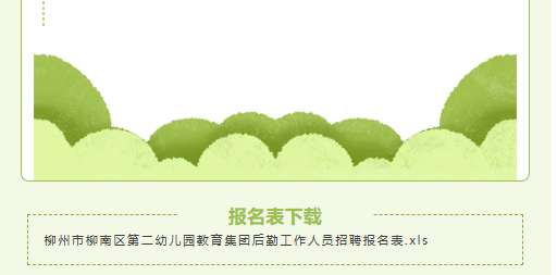 柳州市柳南區(qū)第二幼兒園教育集團(tuán)后勤工作人員招聘公告