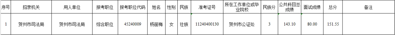 6.6 賀州市司法局2025年考試錄用公務員擬錄用名單