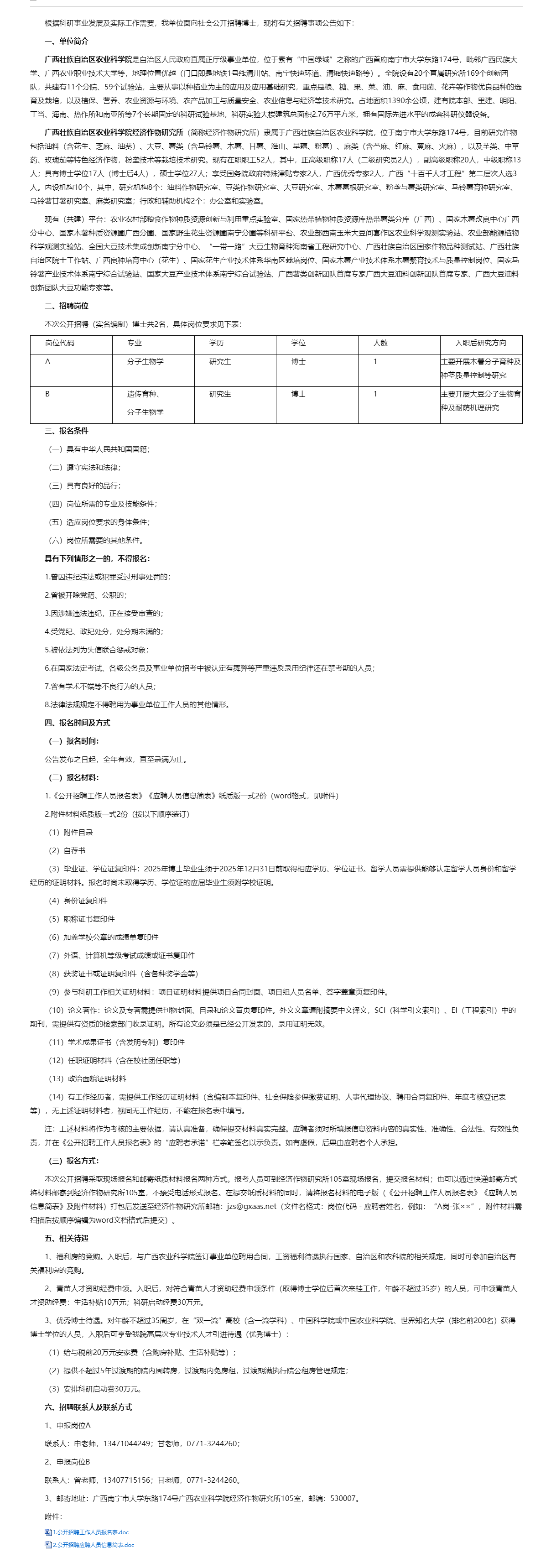 廣西農(nóng)業(yè)科學(xué)院經(jīng)濟(jì)作物研究所2025年博士公開(kāi)招聘公告