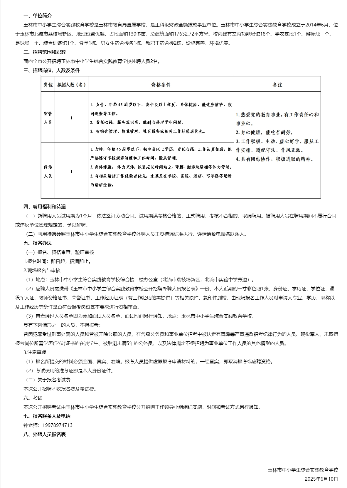 原文標(biāo)題:2025年玉林市中小學(xué)生綜合實踐教育學(xué)校公開招聘外聘人員公告(五)