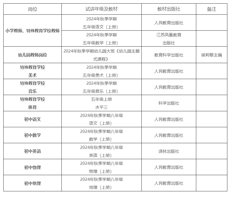 注:1.本次面試只提供試講內(nèi)容及試講要求,不提供教材及教學(xué)用書;2.報(bào)考?xì)J南區(qū)小學(xué)教師、特殊教育學(xué)校教師崗位的考生可自由選擇語文或數(shù)學(xué)進(jìn)行試講。