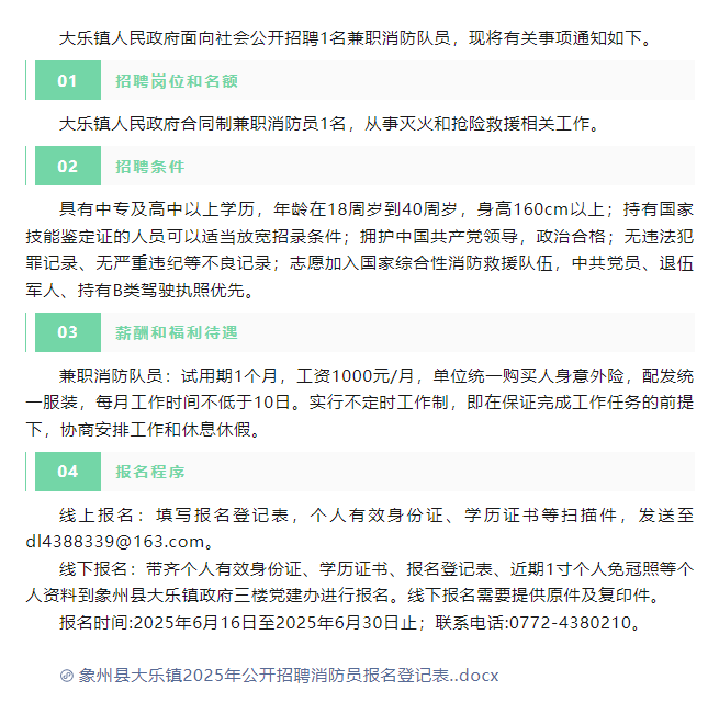 原文標題:大樂鎮(zhèn)招聘消防隊員公告