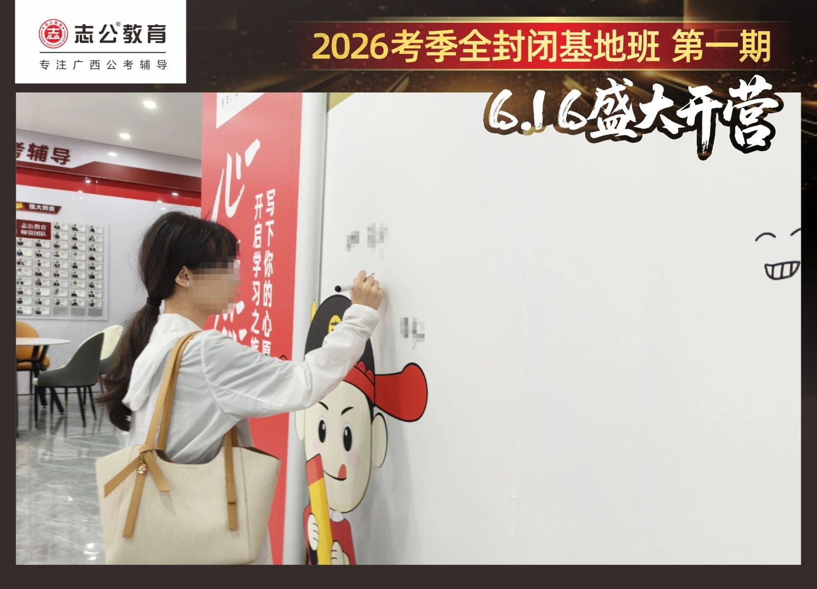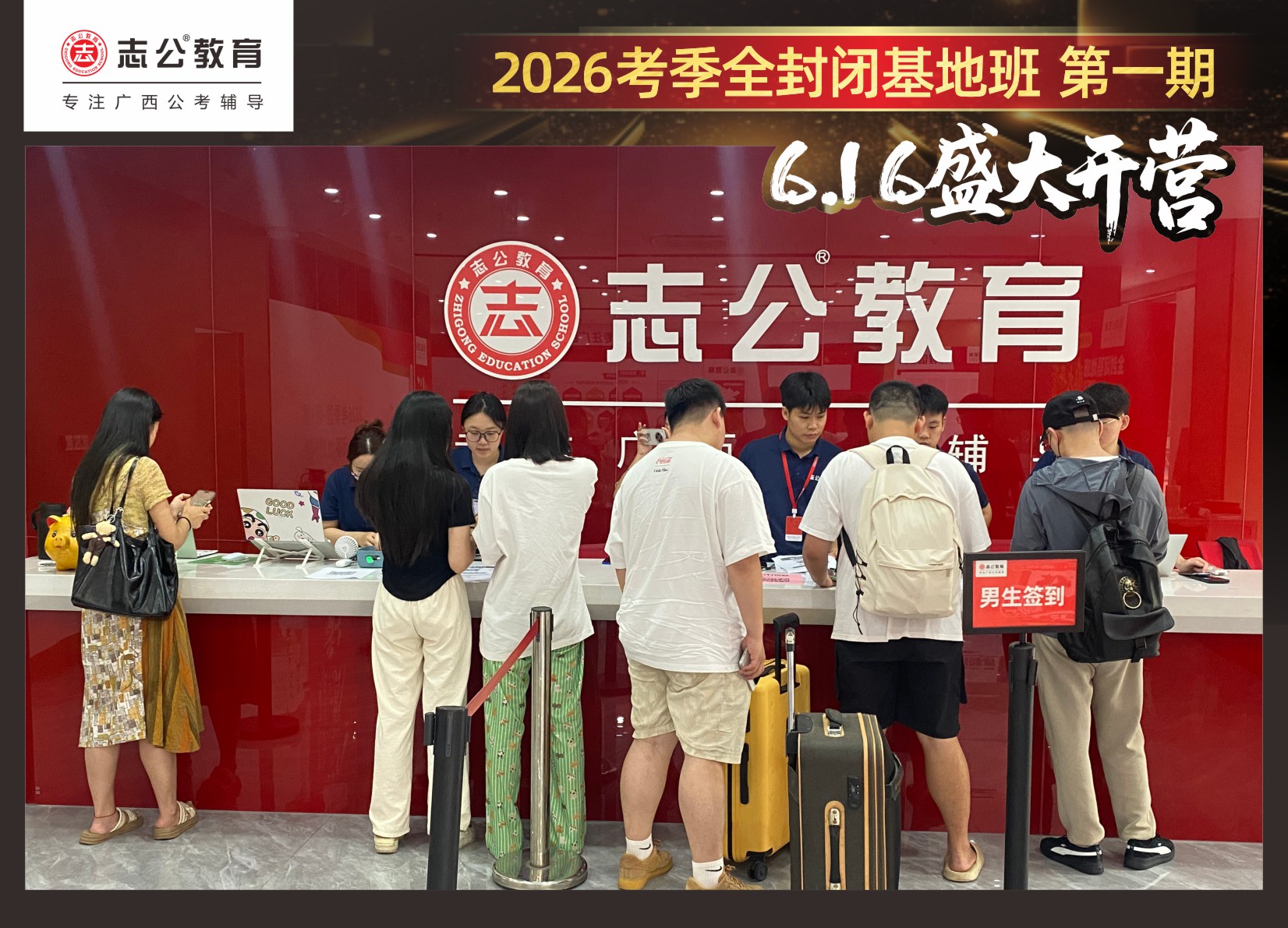 由于這段時(shí)間受臺(tái)風(fēng)影響,南寧迎來下雨天,但學(xué)員們滿懷先一步備考,快一步成功圓夢的滿滿炙熱信心,早早就在志公教育(中關(guān)村)全封閉基地前臺(tái)等候,6月16日,志公教育26考季全封閉基地班第1期的學(xué)員們齊聚一堂,正式開啟他們的公考備戰(zhàn)之旅。簽到環(huán)節(jié)作為基地班課程的第一站,不僅是對(duì)學(xué)員們的歡迎儀式,更是他們邁向夢想的第一步。