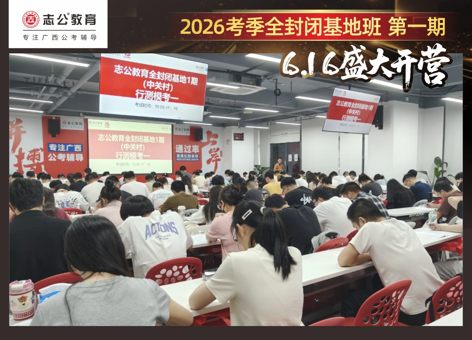 最后,要進(jìn)行的是摸底考試,志公教育26考季全封閉基地班第1期確實(shí)火爆,但是要知道廣西公考每年競爭對(duì)手更多人,只有通過考試才能知道自己在這么多學(xué)員中的水平情況,入營時(shí)的最初水平,更能知道自己在接下來的學(xué)習(xí)中是否有進(jìn)步!