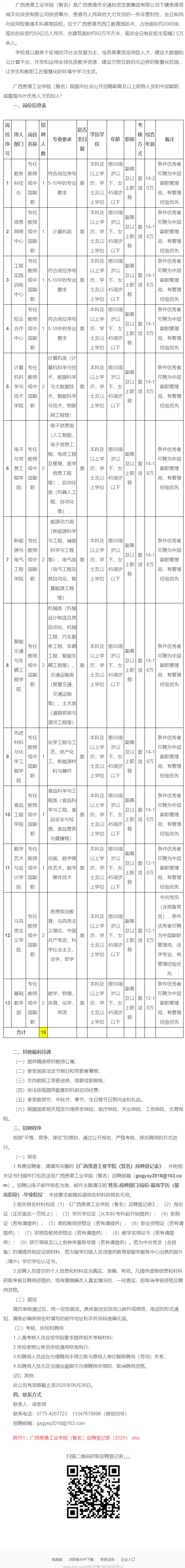 廣西貴港工業(yè)學(xué)院(暫名) 副高及以上職稱人員和中層副職招聘公告