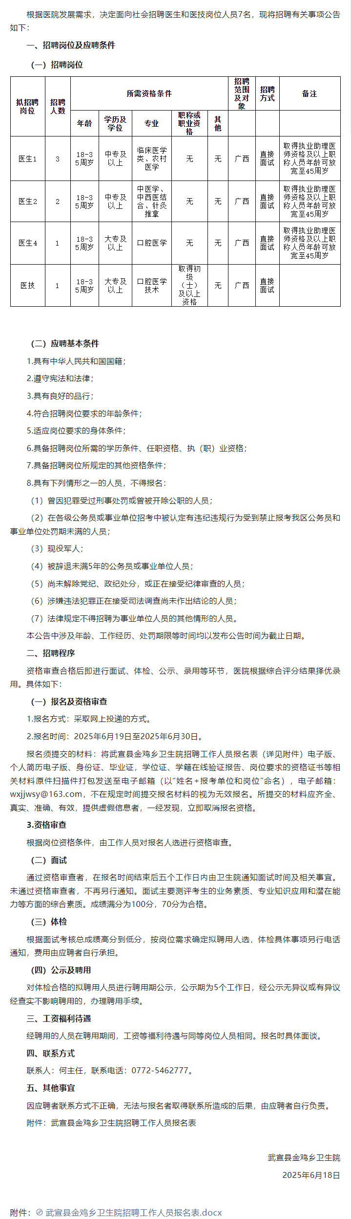 原文標題:武宣縣金雞鄉(xiāng)衛(wèi)生院2025年公開招聘編外聘用人員公告(第二期)