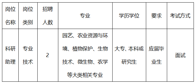 4.已獲得園藝、農(nóng)業(yè)資源與環(huán)境、植物保護(hù)、生物技術(shù)、微生物、農(nóng)學(xué)等相關(guān)專業(yè)大專、本科或研究生畢業(yè)證書(shū)(要求應(yīng)屆畢業(yè)生);