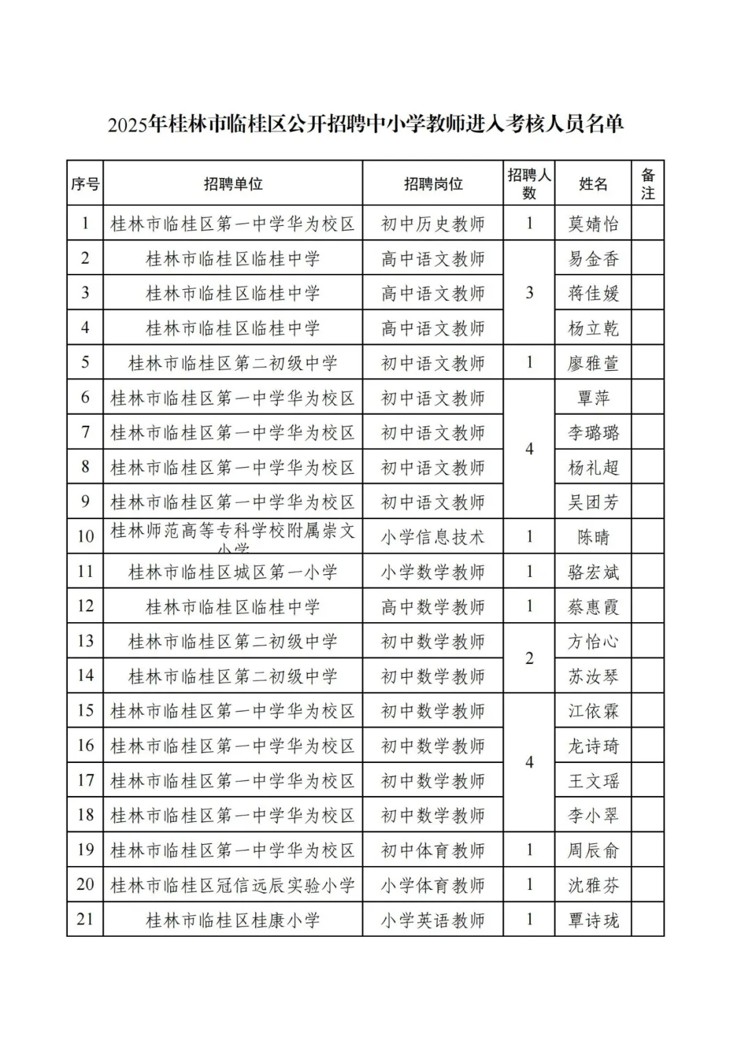 附件:2025年桂林市臨桂區(qū)公開(kāi)招聘中小學(xué)教師進(jìn)入考核人員名單
