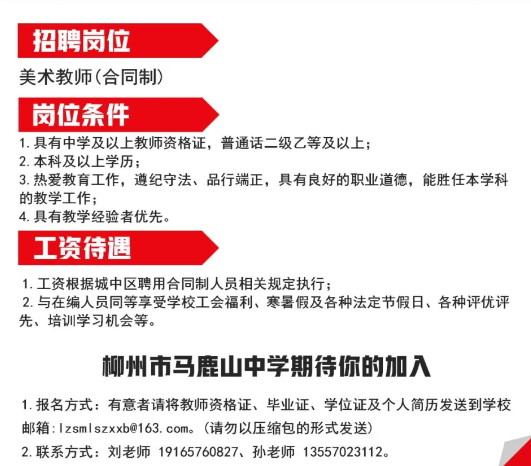 2025年柳州市馬鹿山中學(xué)招聘美術(shù)教師