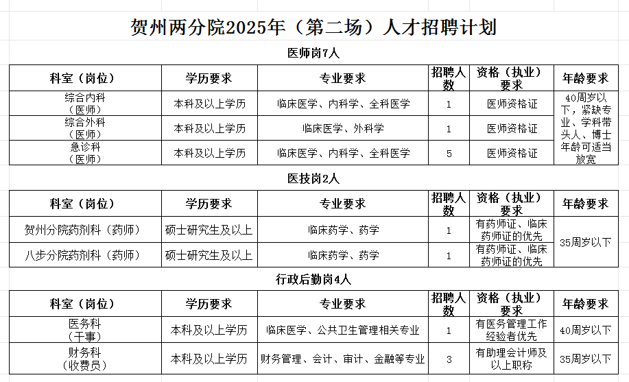 廣西桂東人民醫(yī)院賀州兩分院2025年(第二場)人才招聘公告
