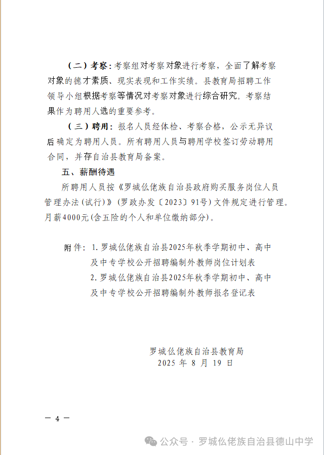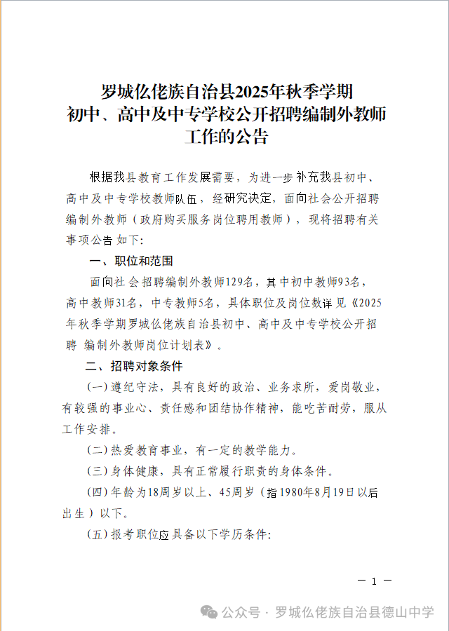 原文標題:羅城仫佬族自治縣2025年秋季學(xué)期初中、高中及中專學(xué)校公開招聘編制外教師工作的公告
