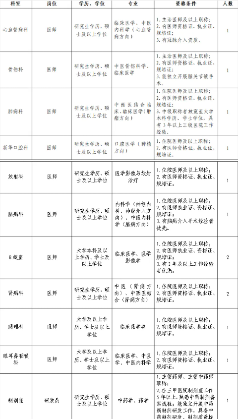 根據(jù)醫(yī)院高質(zhì)量發(fā)展需要,我院誠(chéng)聘衛(wèi)生醫(yī)療相關(guān)專業(yè)領(lǐng)域的人才,歡迎投簡(jiǎn)歷應(yīng)聘。