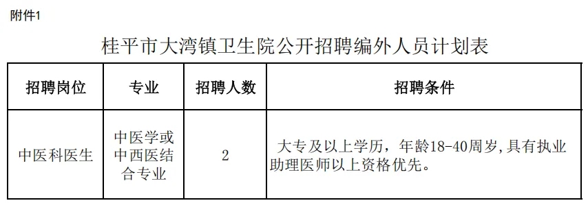 附件:1.桂平市大灣鎮(zhèn)衛(wèi)生院公開招聘編外工作人員計(jì)劃表
