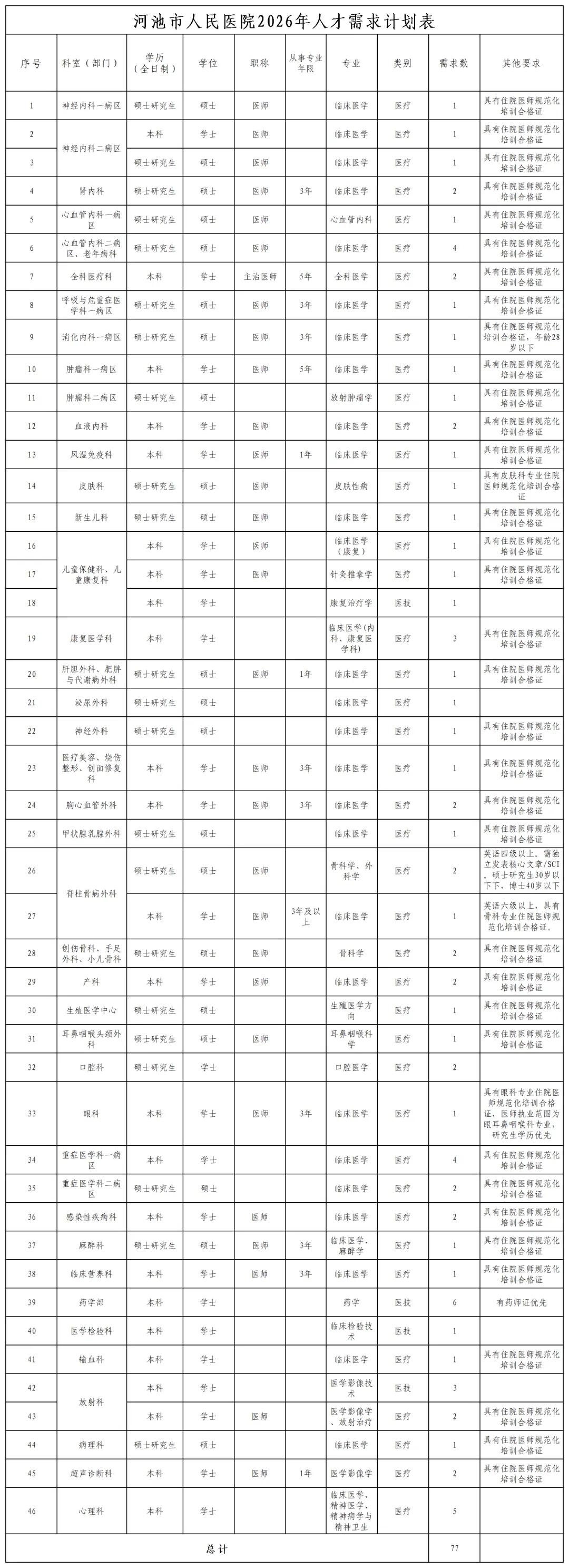 2026年河池市人民醫(yī)院人才招聘77人