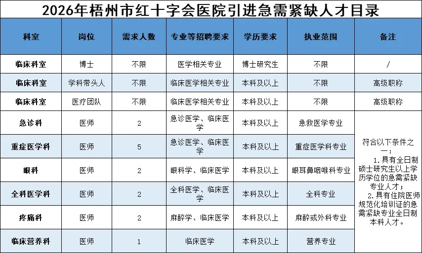 2026年梧州市紅十字會(huì)醫(yī)院醫(yī)療集團(tuán)人才招聘公告