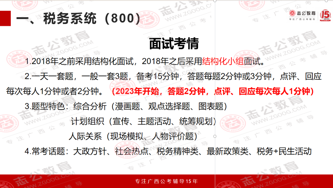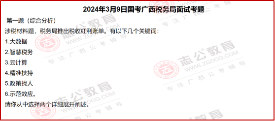 國考面試?yán)?,稅?wù)系統(tǒng)的題目一直有個(gè)很明顯的特點(diǎn),就是緊跟國家政策、貼近實(shí)際工作。尤其是2024年廣西稅務(wù)局的面試題,把這個(gè)特點(diǎn)體現(xiàn)得特別透徹??催@些題目,既能知道稅務(wù)工作實(shí)際需要什么樣的人、做什么樣的事,也能清楚面試到底要考察我們哪些核心能力。今天小志就帶大家了解一下,國考中稅務(wù)系統(tǒng)面試一些相關(guān)信息解讀: