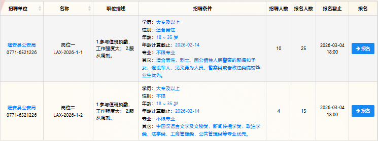 附件:1. 隆安縣公安局2026年度公開招聘警務(wù)輔助人員職位計(jì)劃表